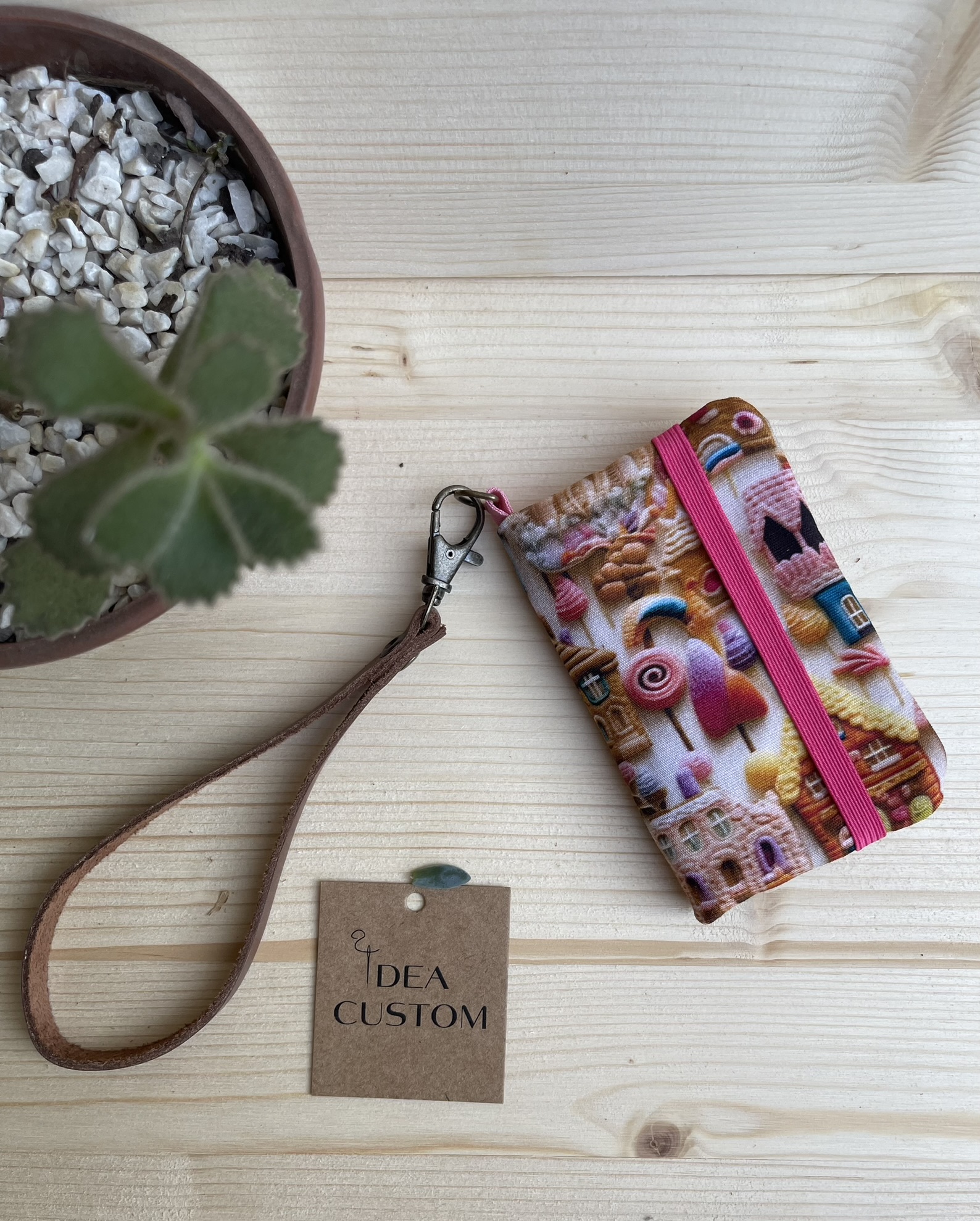 Cores e Acabamento: Disponível em tricoline com estampas digitais e sofisticadas até vibrantes e modernas. A alça de couro pode ter acabamentos em tons clássicos, como marrom ou preto, ou em cores que complementam o tecido da carteira.