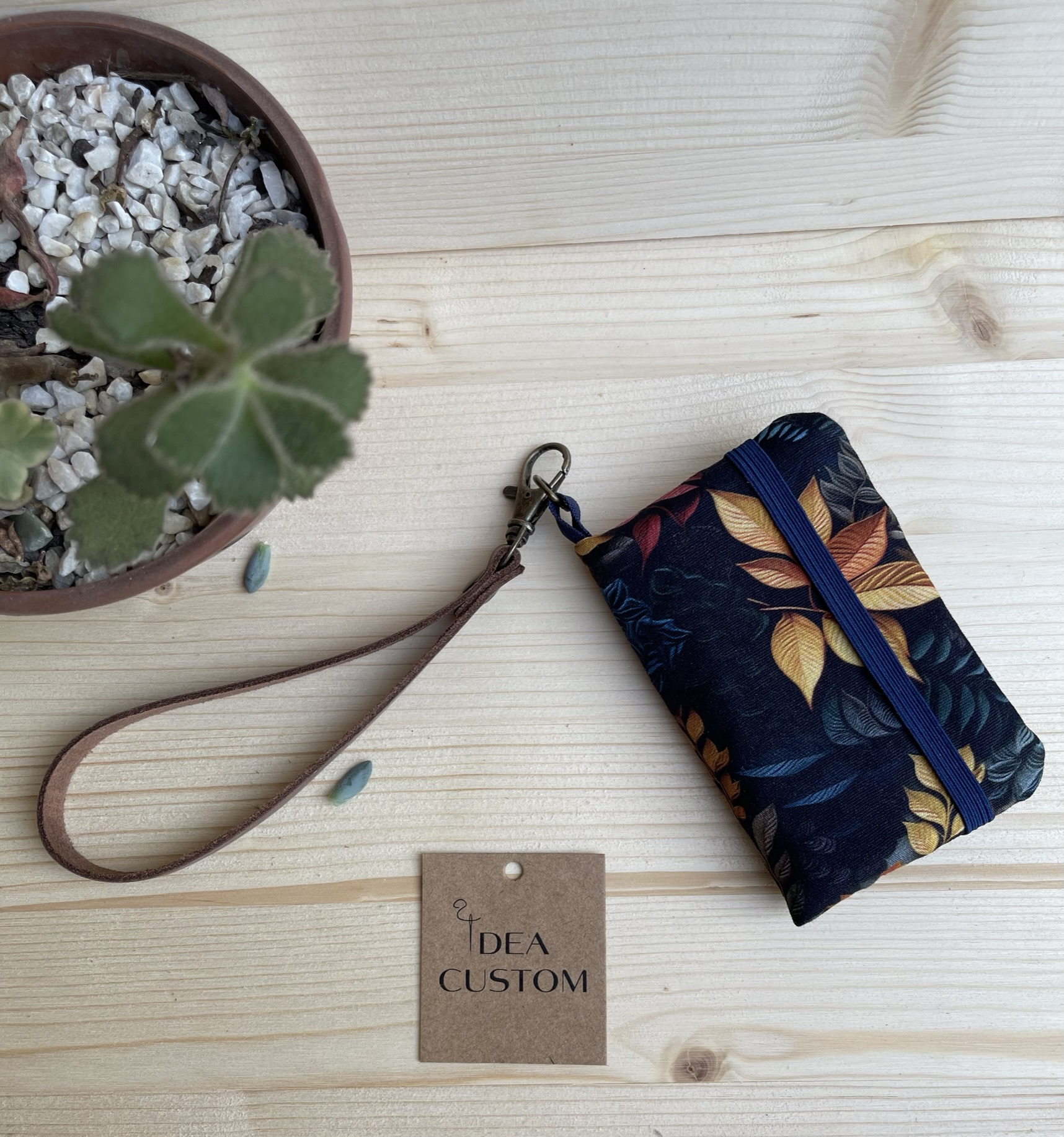 Cores e Acabamento: Disponível em tricoline com estampas digitais e sofisticadas até vibrantes e modernas. A alça de couro pode ter acabamentos em tons clássicos, como marrom ou preto, ou em cores que complementam o tecido da carteira.